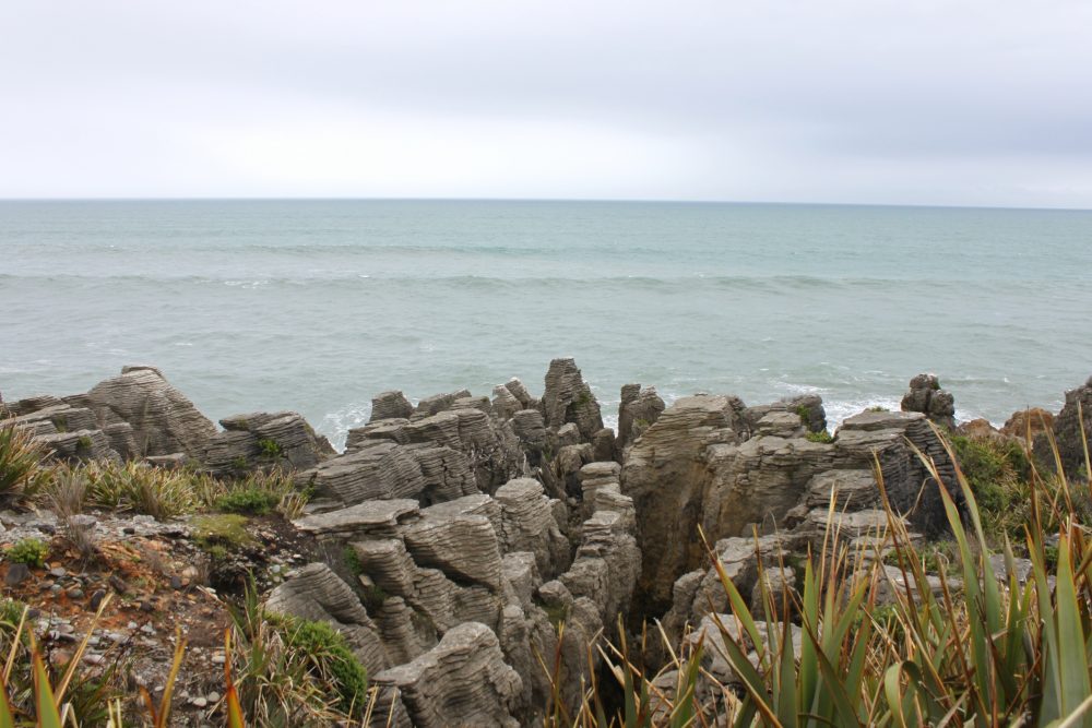 Drumul de la Abel Tasman la Franz Josef a fost unul lung, dar frumos, mai ales indata ce am ajuns pe coasta de vest. Am oprit la Greymounth pentru a vedea Pancake Rocks. Vremea incepuse deja sa se strice, insa asta nu a facut decat sa ma bucure penru ca peisajul a devenit spectaculos, cu valuri care patrundeau in gaurile create de stancile cu aspect de clatite suprapuse, creand astfel un peisaj inedit si dur, zgomotos. Nu am stat decat jumatate de ora, insa mi-a placut enorm, atat zona cu stanci, cat si vederea inspre ocean, putin incetosata de spuma valurilor. Poate daca as fi stat doua luni in Noua Zeelanda, asa cum multi calatori o fac, mi-as fi prelungit sederea aici cu inca o noapte pentru a ma bucura de imaginea oceanului.